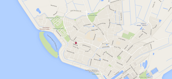 Büsum erreichen Sie z. B. über die Autobahn A 23, Abfahrt Heide-West/Büsum, dann weiter auf der B 203 Richtung Büsum. Am zweiten Kreisel nehmen Sie die zweite Ausfahrt (Heider Straße), dann beim EDEKA-Markt rechts Richtung Bahnhof, erste Straße rechts (An der Mühle). Von hier geht die Dithmarscher Straße rechts ab